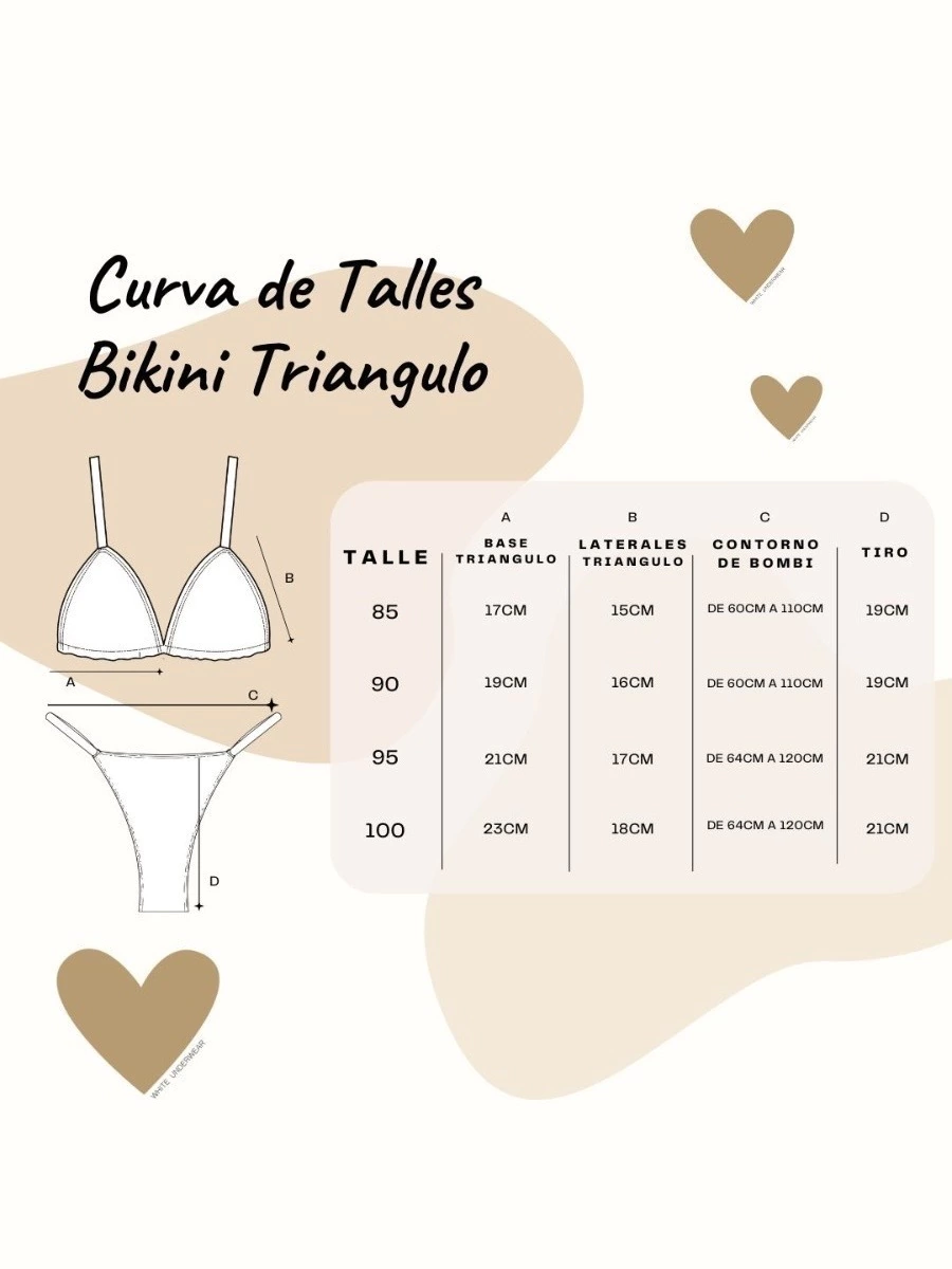 Bikini triangulito con tiras breteles para que la ates a tu gusto, NO fija, Bombacha, less regulable del mismo material. Interior forrado, tela con protección anticloro y UV.