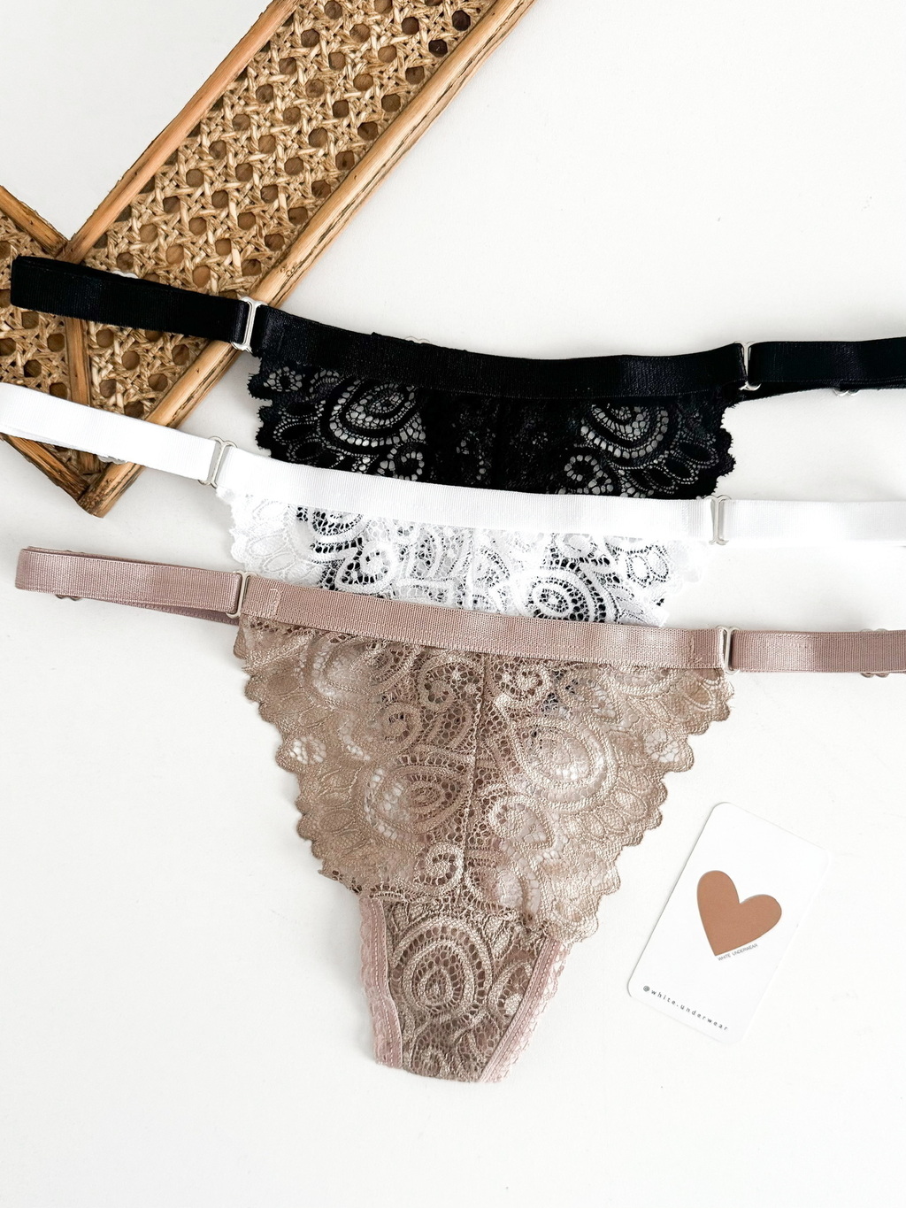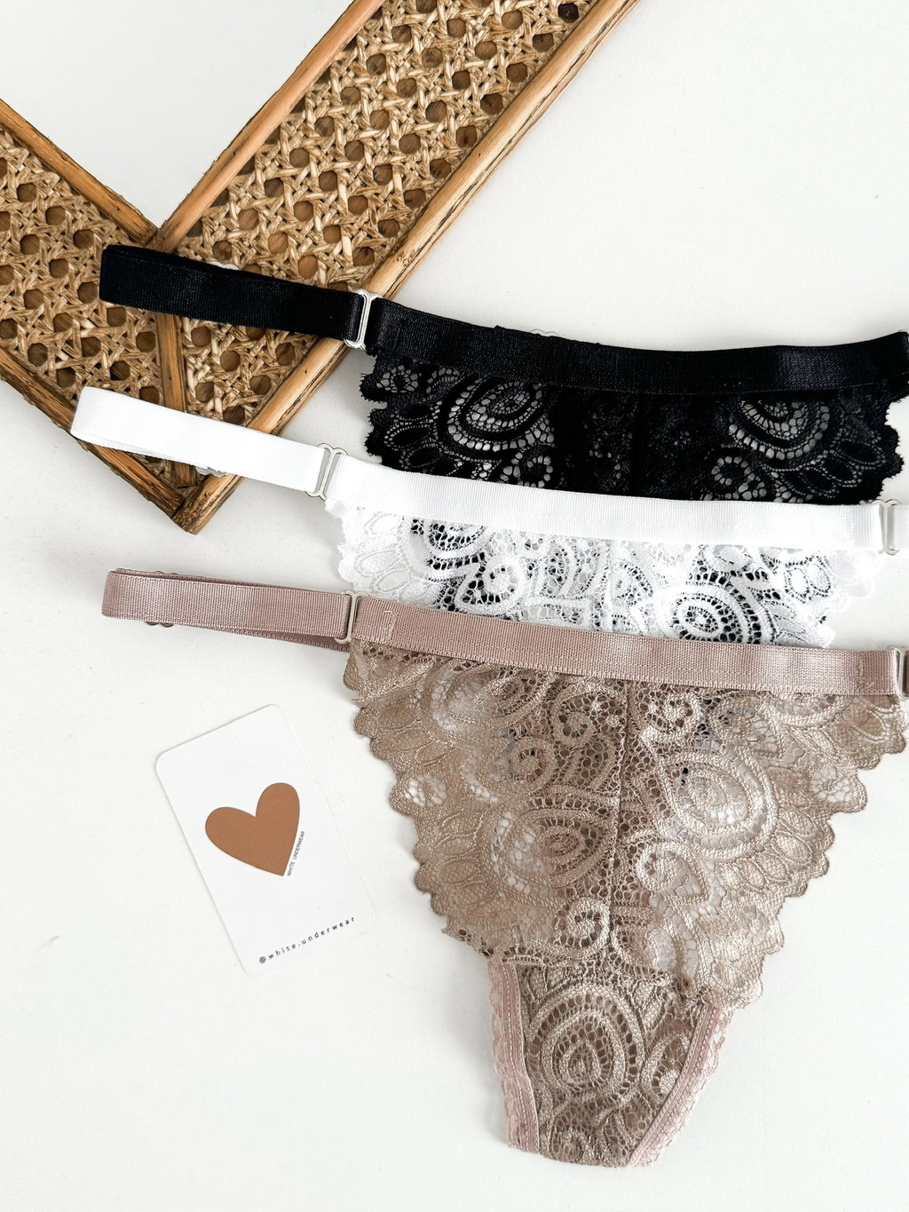 Pack x3 Bombachas bretel ancho regulables lisas de encaje