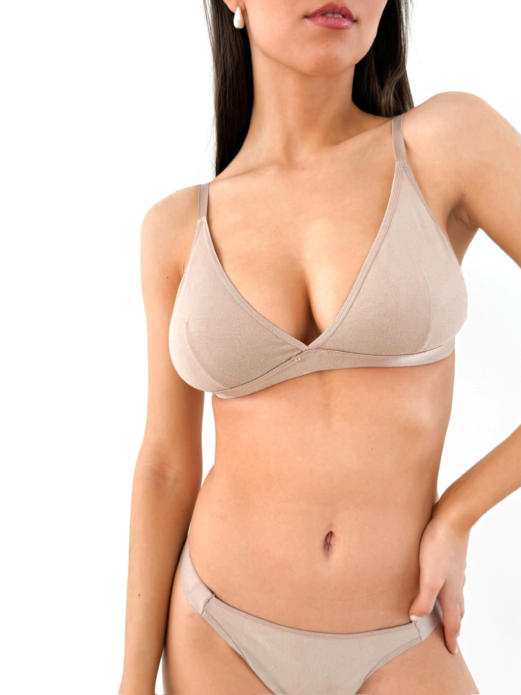 Conjuntotriangulo de algodon, con elástico de base ancho. con bombacha less del mismo material laterales elasticos