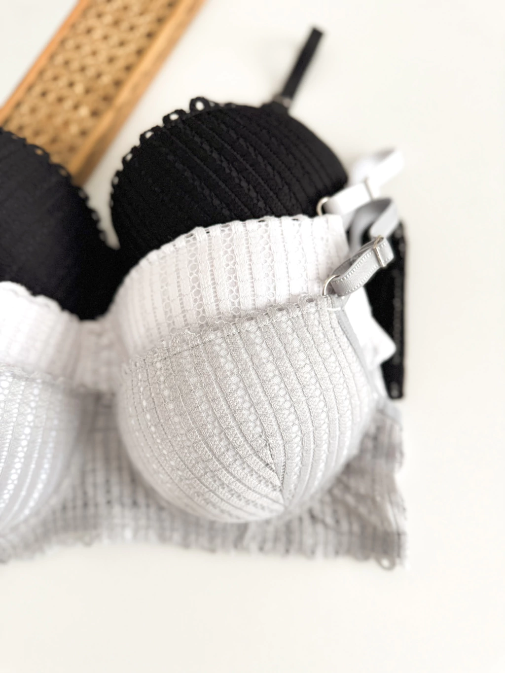 Conjunto tasa Soft con aro de encaje con bombacha less con encaje frontal y microfibra lateral.