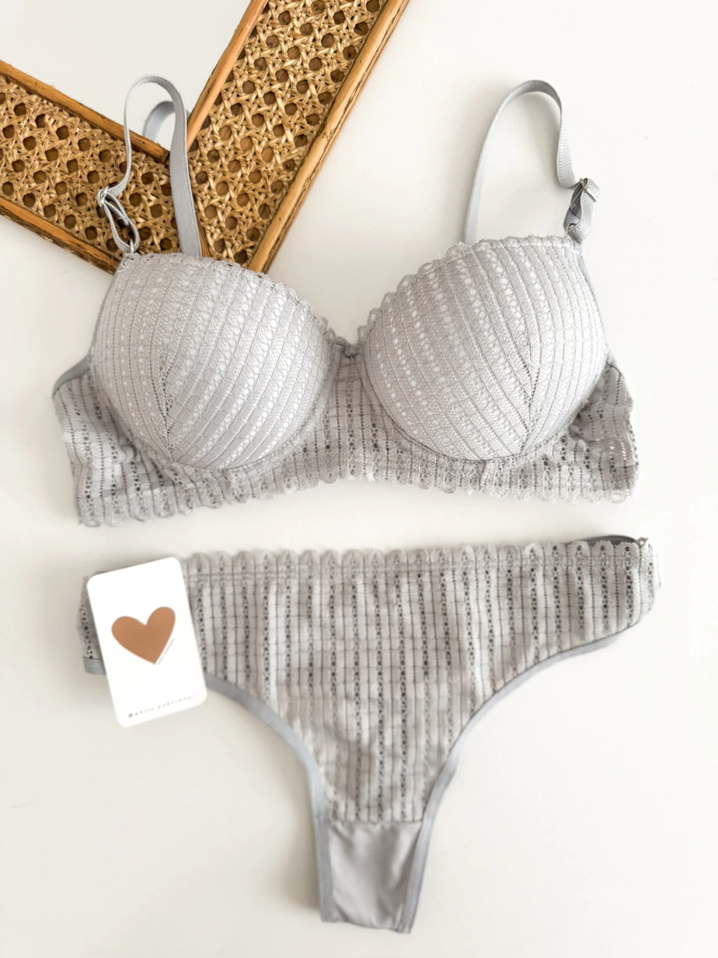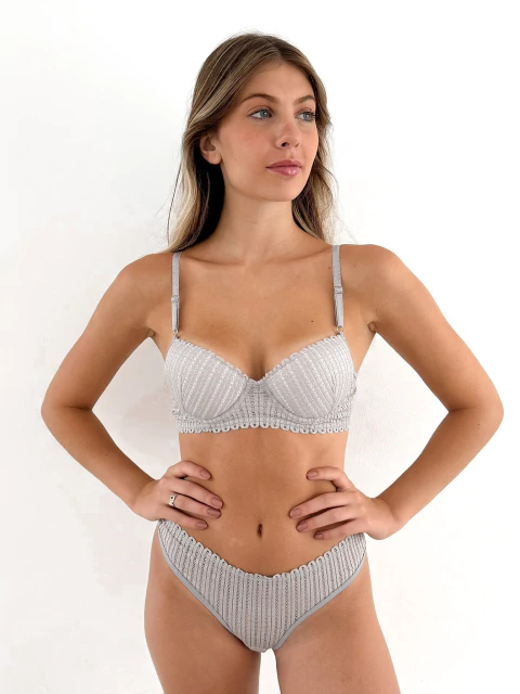 Conjunto tasa Soft con aro de encaje con bombacha less con encaje frontal y microfibra lateral.