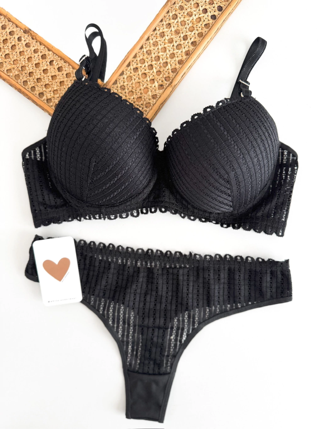 Conjunto tasa Soft con aro de encaje con bombacha less con encaje frontal y microfibra lateral.