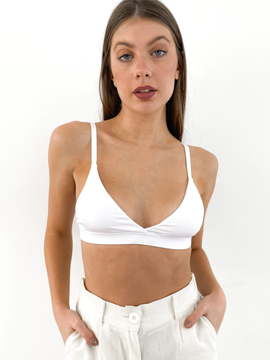 Corpiño triángulo de microfibra doble tela, con elástico de base ancho.